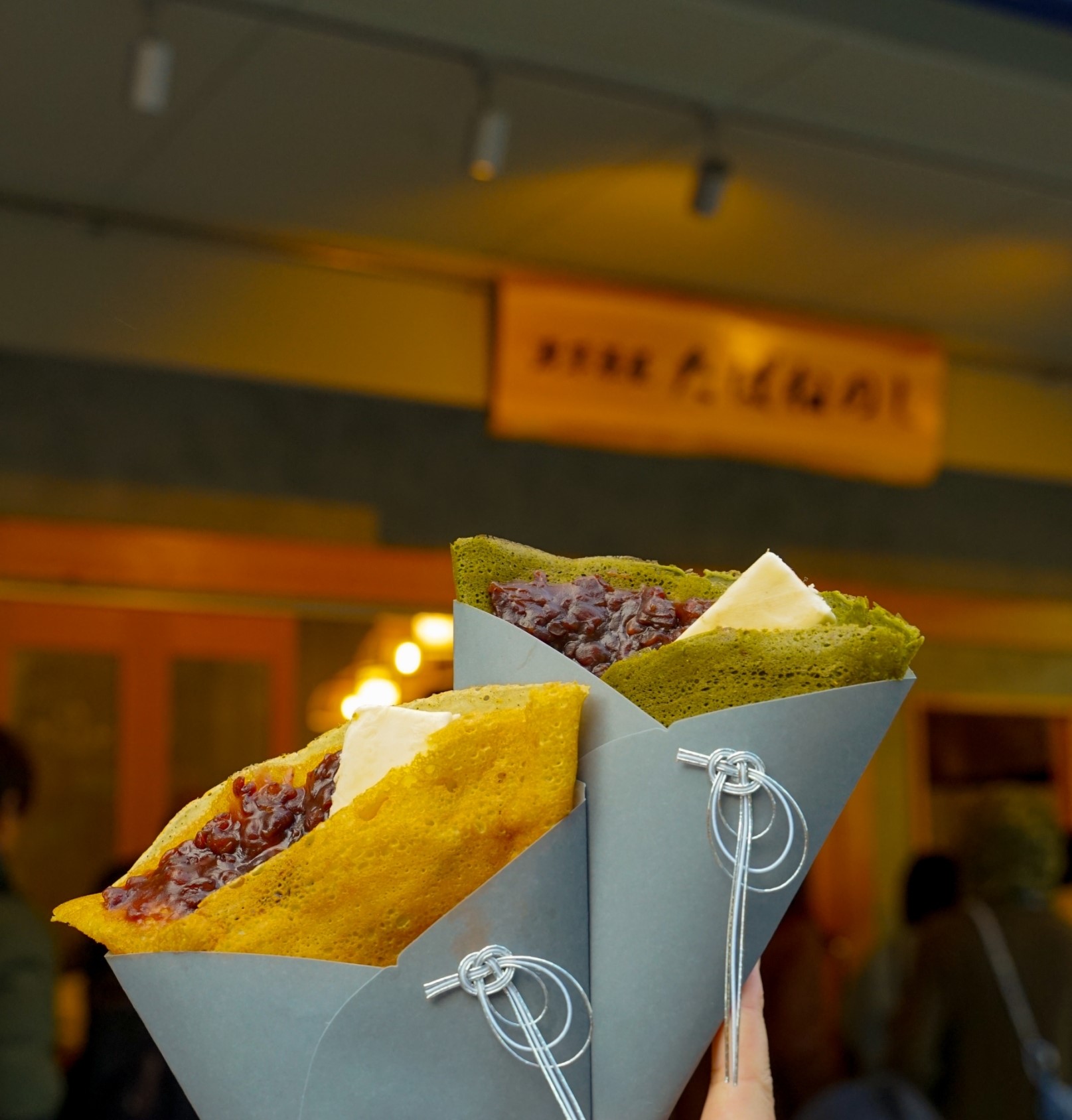 生地は、抹茶とプレーンの2種類からお選びいただけます。 バターを塗りながら焼き上げ、粒あんをはさみました。 シンプルながらも上品な仕上がりは、 生地の食感、バターのコク、甘くまろやかな 粒あんのハーモニーをお楽しみいただけます。